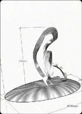 剪影是以目標對象的影子為基礎(chǔ)制作而成,可以簡單理解為二維圖形,但與真正的二維不同的是其具有一定的進深(即厚度),常見于體育運動人物,如把運動標識做成雕塑。